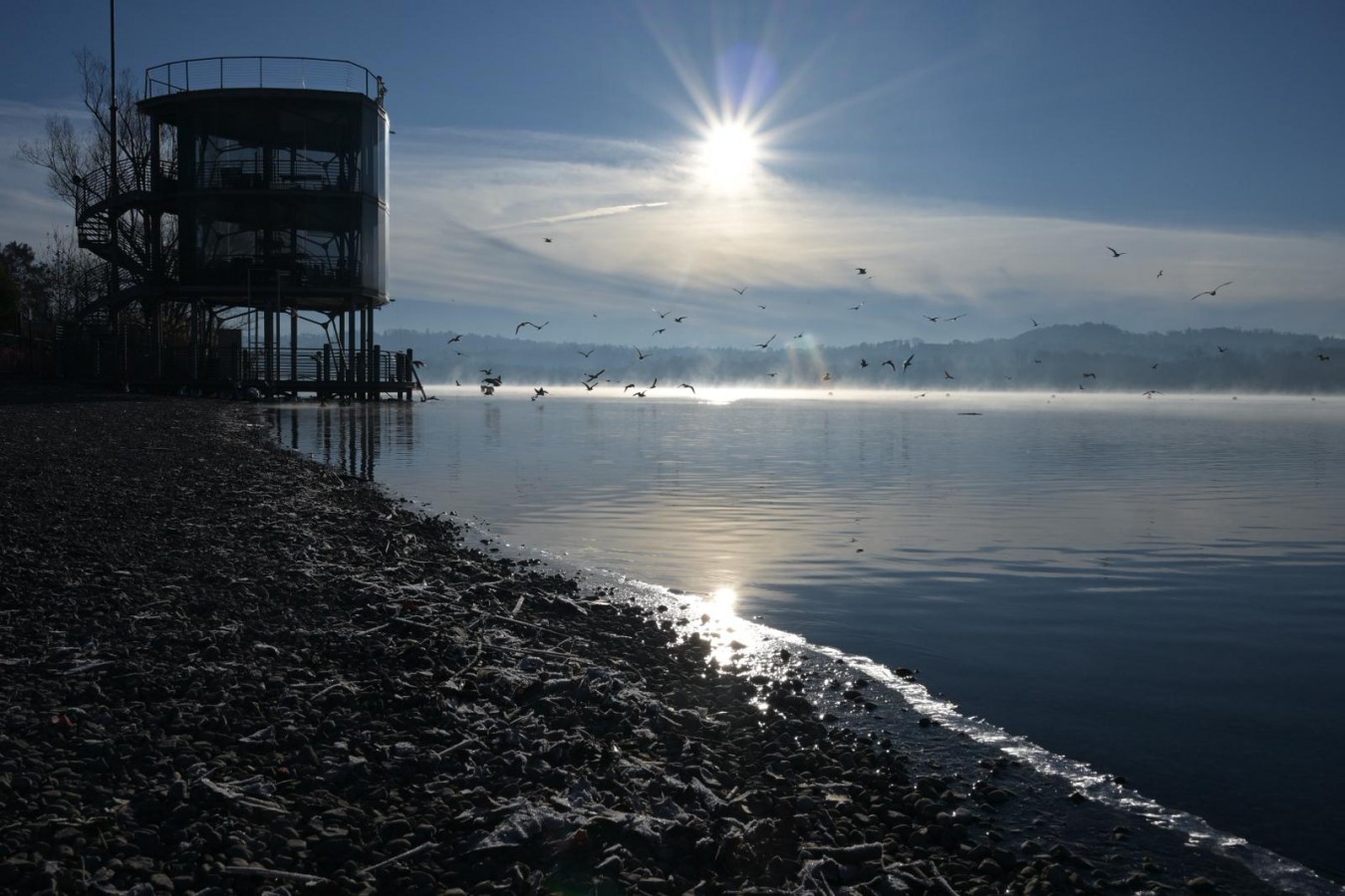 Niente a che vedere con il timido strato di ghiaccio (nella foto Benvegnù) che, complice le temperature rigide, ha iniziato a formarsi in mattinata sulla riva del lago di Varese alla Schiranna.