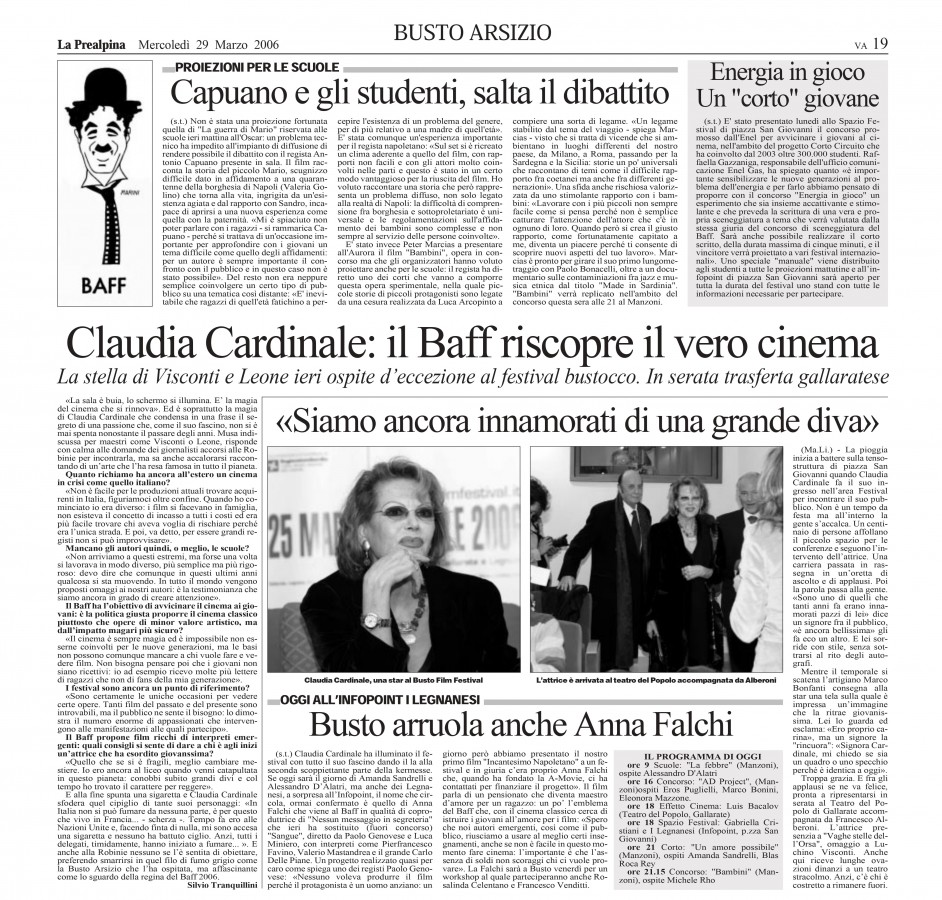 Il 28 marzo 2006 Claudia Cardinale era stata ospite del Busto Arisio Film Festival. Si legge nell’intervista di Silvio Tranquillini pubblicata sulla Prealpina: