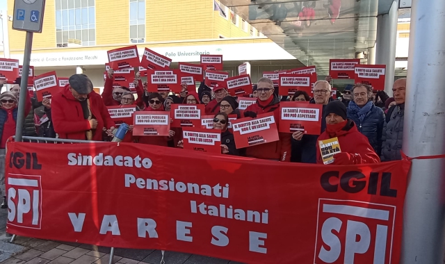 Davanti all'ospedale di Varese la protesta di Spi Cgil