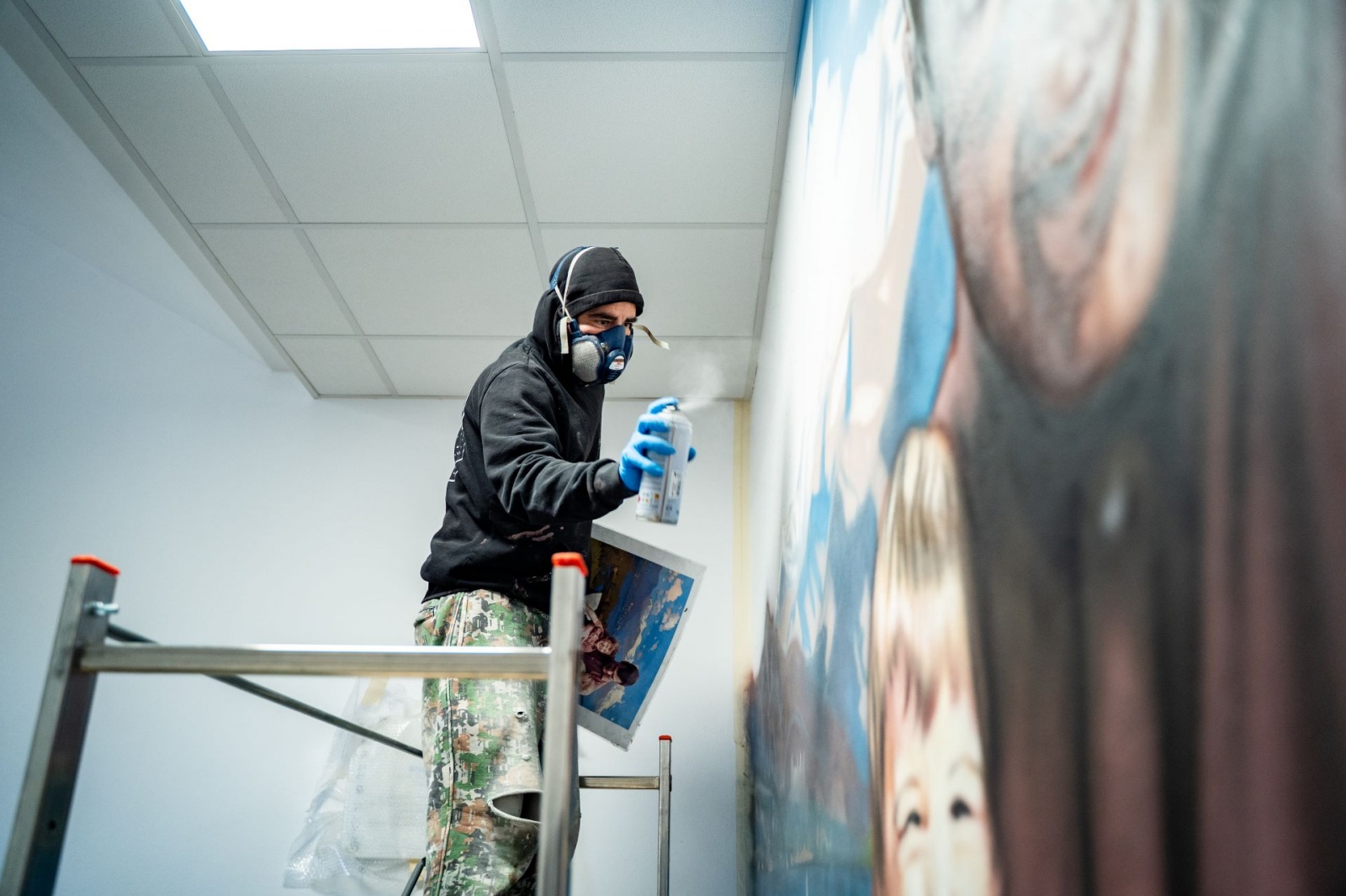 “Ho voluto costruire un’immagine che non si limitasse a rappresentare, ma che contenesse il movimento, la traccia viva delle persone che attraversano ogni giorno questo luogo. Il muro diventa così superficie d’incontro: tra dentro e fuori, tra arte e vita reale. Ogni pennellata è una relazione, un frammento di umanità che si ricompone in un disegno più grande.”